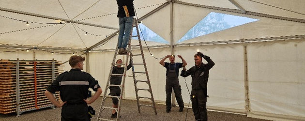 Schließlich neigt sich das offizielle Spektakel dem Ende zu und irgendwann zwischen Samstag und Sonntag verlassen die letzten Gäste unsere Räumlichkeiten. Zeit kurz durchzuschnaufen und sich auf ein Getränk zusammenzusetzen, bevor es – vornehm ausgedrückt: etwas ruhebedürftig - ins Bett geht. Jetzt erst einmal ausschlafen, nach den anstrengenden Tagen? Weit gefehlt. Am Sonntag – das ist der gleiche Tag an dem wir gerade schlafen gegangen sind – finden wir uns wieder im Gerätehaus ein, um einen Rückbau in ein ebensolches zu starten. Die einen so um 09 Uhr, einige auch ein wenig später. Das ergibt sich vermutlich aus unterschiedlichen Entfernungen zwischen Wohnort des Feuerwehrmitglieds und dem Feuerwehrhaus. Man braucht eben für das Überwinden größerer Entfernungen auch mehr Zeit. Wieder wird ausgeschlafen und topmotiviert entschmückt, entsorgt, geputzt, geschraubt, gehämmert und weggeräumt bis sich schließlich hinter und unter den verschwundenen Aufbauten wieder ein Feuerwehrhaus erkennen lässt. Die Autos dürfen die Fahrzeughalle wieder betreten und es sieht fast so aus als wäre die letzte Woche nichts gewesen. Und zu guter Letzt geht die berufstätige Mannschaft am Montagmorgen wieder ausgeruht und entspannt vom Wochenende ihren eigentlichen Brotjobs nach.