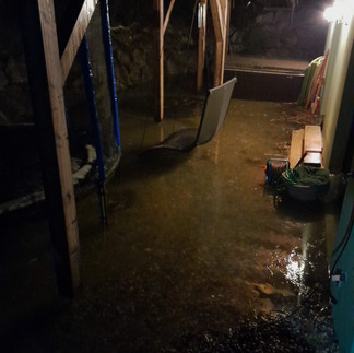 Eine Terrasse wurde vollständig von Wasser überschwemmt und musste mittels Unterwasserpumpe trocken gelegt werden.