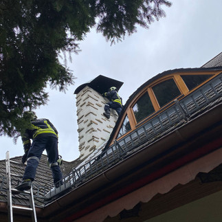 Der dritte Einsatz fand am 18.Februar in der großen Steinstraße in "luftiger" Höhe statt. Es musste eine einseitig lose Schornsteinabdeckung beseitigt werden. Die Blechabdeckung wurde mit der Akku-Flex abgetrennt und abgenommen, was ein unkontrolliertes Herunterfallen verhindern sollte.